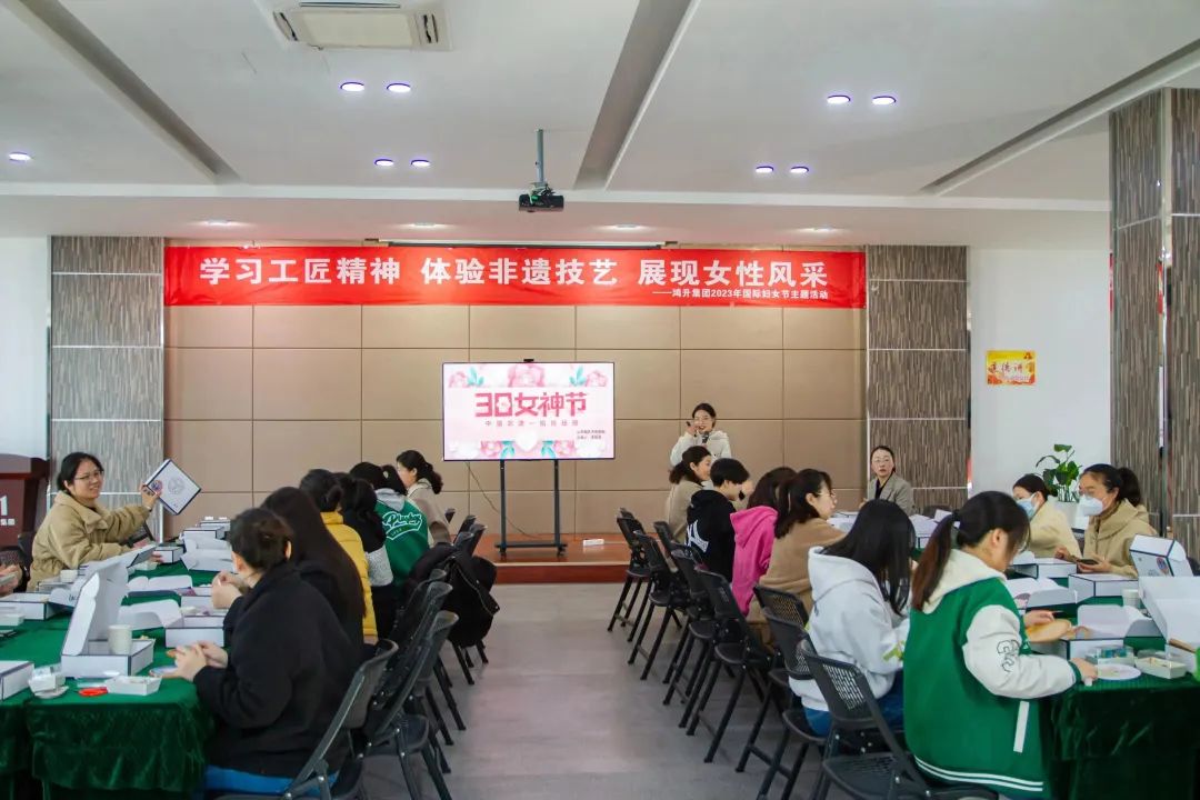为迎接第113个“三八”国际妇女节,彰显新时代女性工作者风采,2023年3月8日,在鸿升集团党支部和工会的组织下,鸿升集团举办以“学习工匠精神 体验非遗技艺 展现女性风采”为主题的庆祝活动。